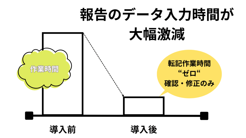 現場での報告書をカメラで撮影し、アップロードするだけで、普段使っているサービスやスプレッドシートにデータが登録されるサービスです。